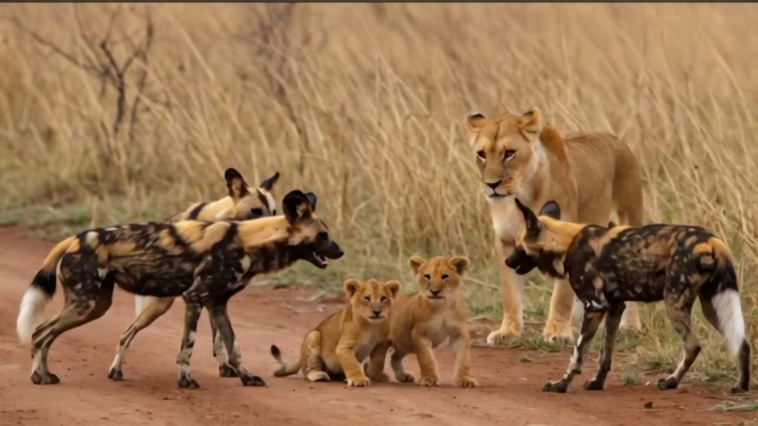 The Wild dogs thought that it was an easy target to kill the cubs but they also had to take into consideration the cubs mother which was a silent witness to what was happening.
