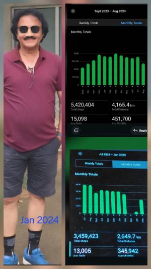 - Walking 14,000 steps on an average daily: Averaging about 3,000 km per year, a testament to consistent effort.